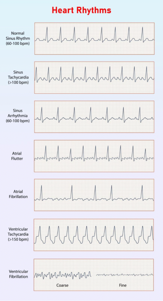 - Sustained Arrhythmias: Rhythms that last long enough to cause a drop in blood pressure.