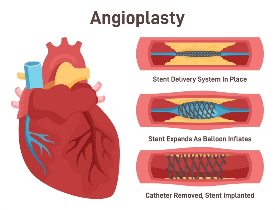 - The Balloon: A fine wire is passed across the narrowing. A tiny balloon is slid over this wire and inflated at high pressure. This crushes the fatty plaque against the artery wall to make space.